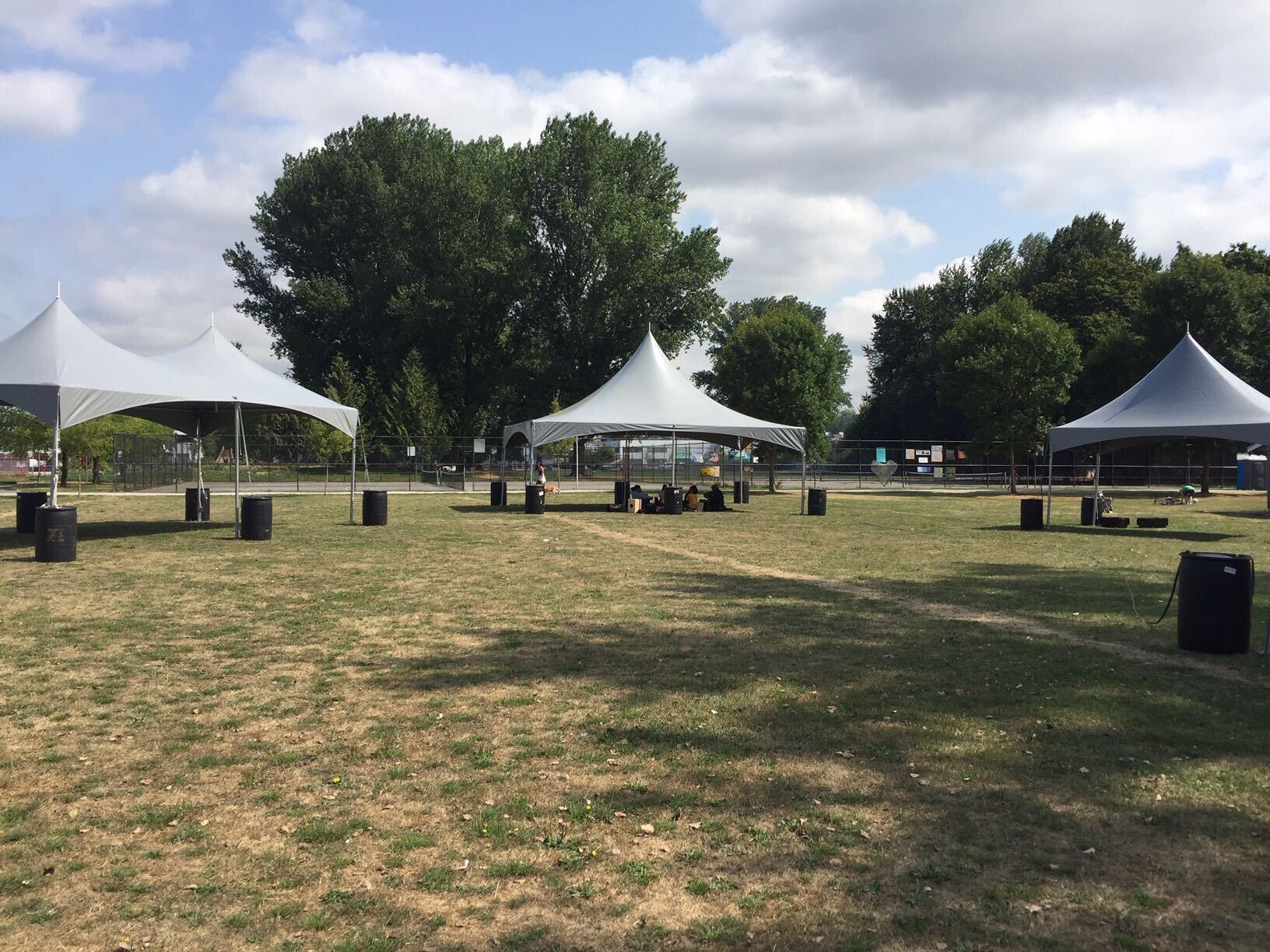 Rumble has seven tents for outdoor gatherings and performance. Consider them. We lend them.
